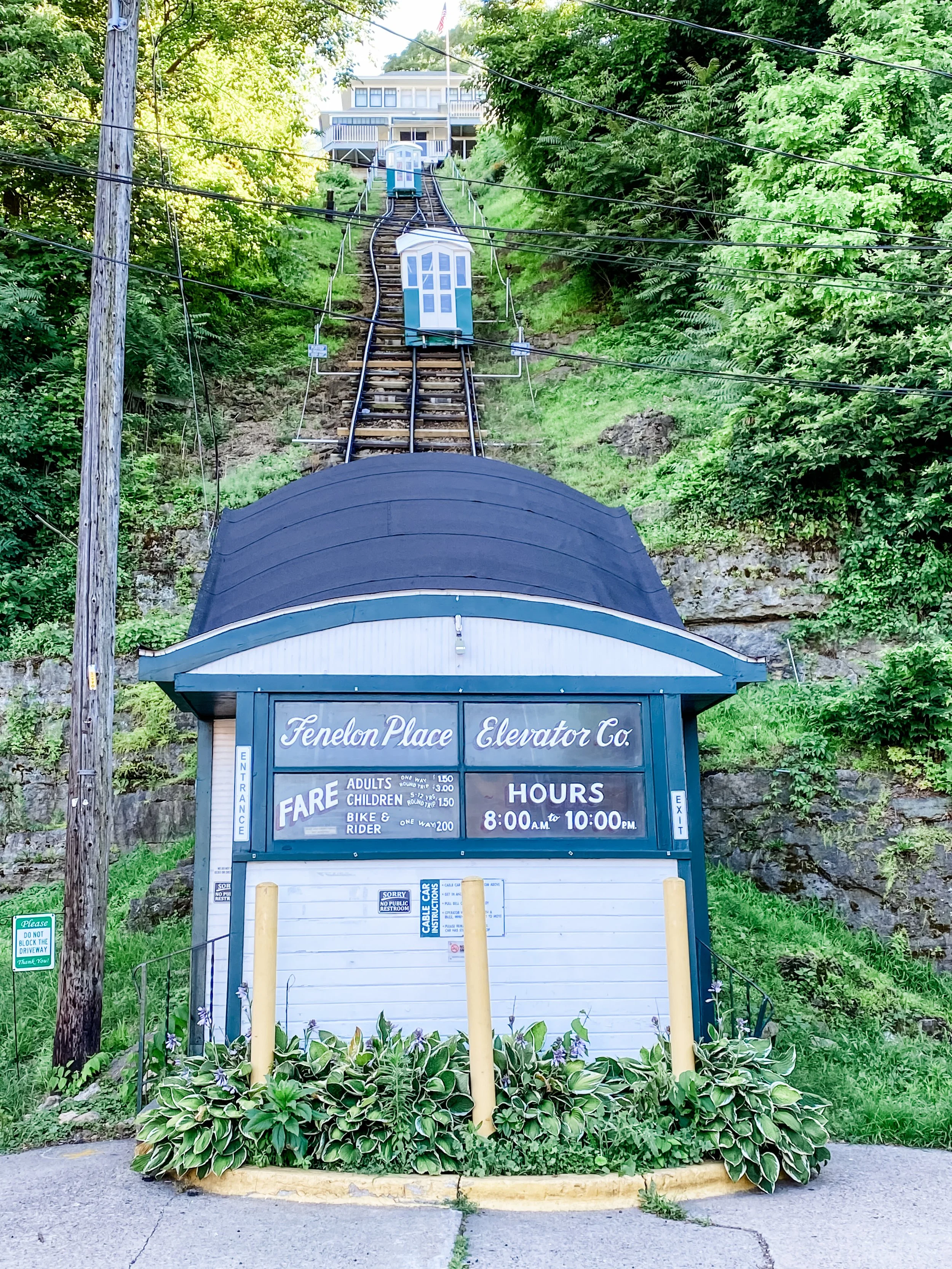 We made a quick stop at the Fenelon Place Elevator — a tiny, steep rail lift that climbs the side of a bluff. It’s quirky and short and exactly the kind of roadside stop that makes kids feel like something unusual is happening. Not everything has to be monumental to be memorable.