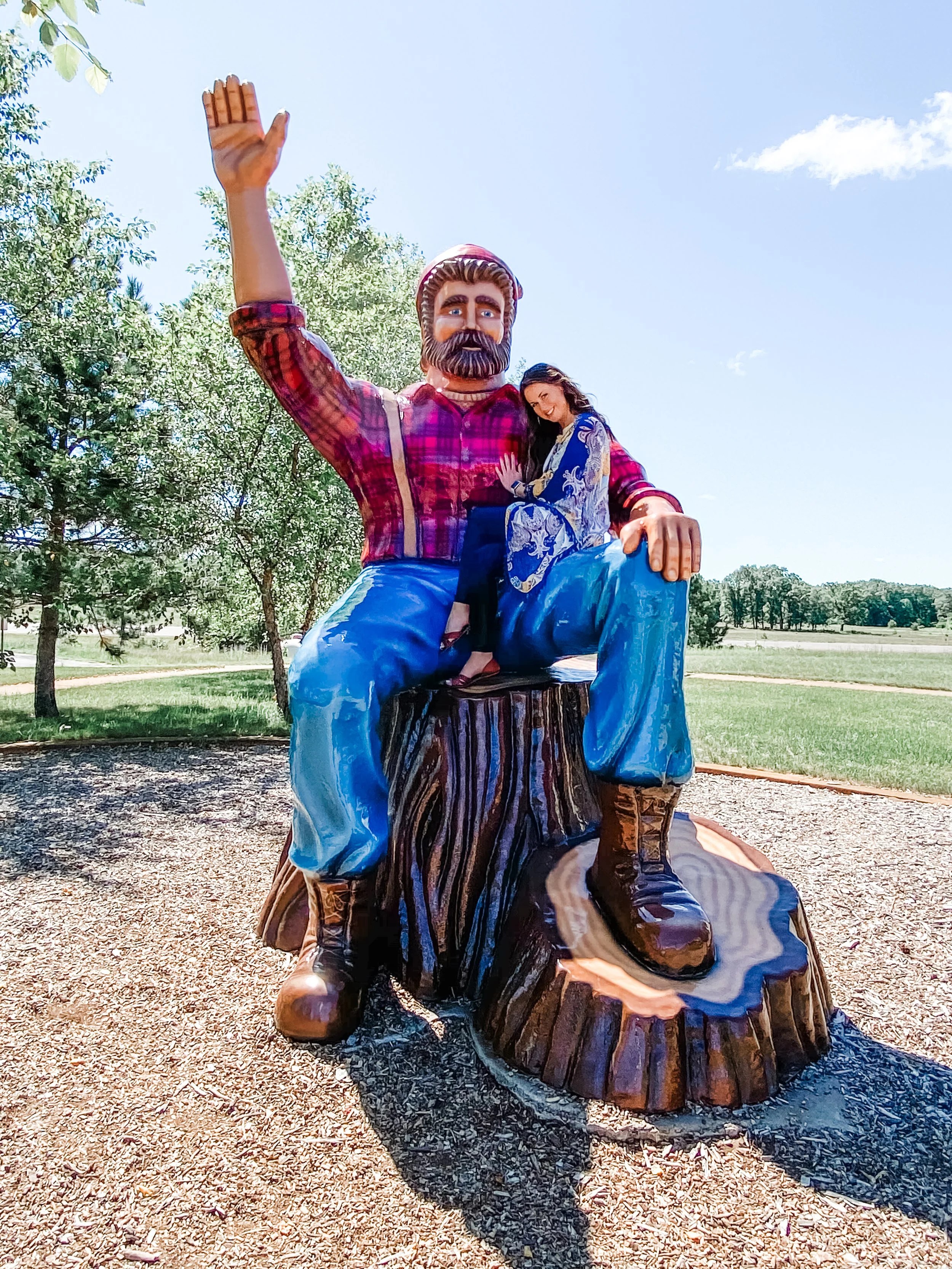 The following morning, we headed north to Brainerd to see Paul Bunyan. It was slightly out of the way, technically unnecessary — and completely worth it. The kids were a little unsure at first, but they posed for pictures anyway. That’s road trip tradition.