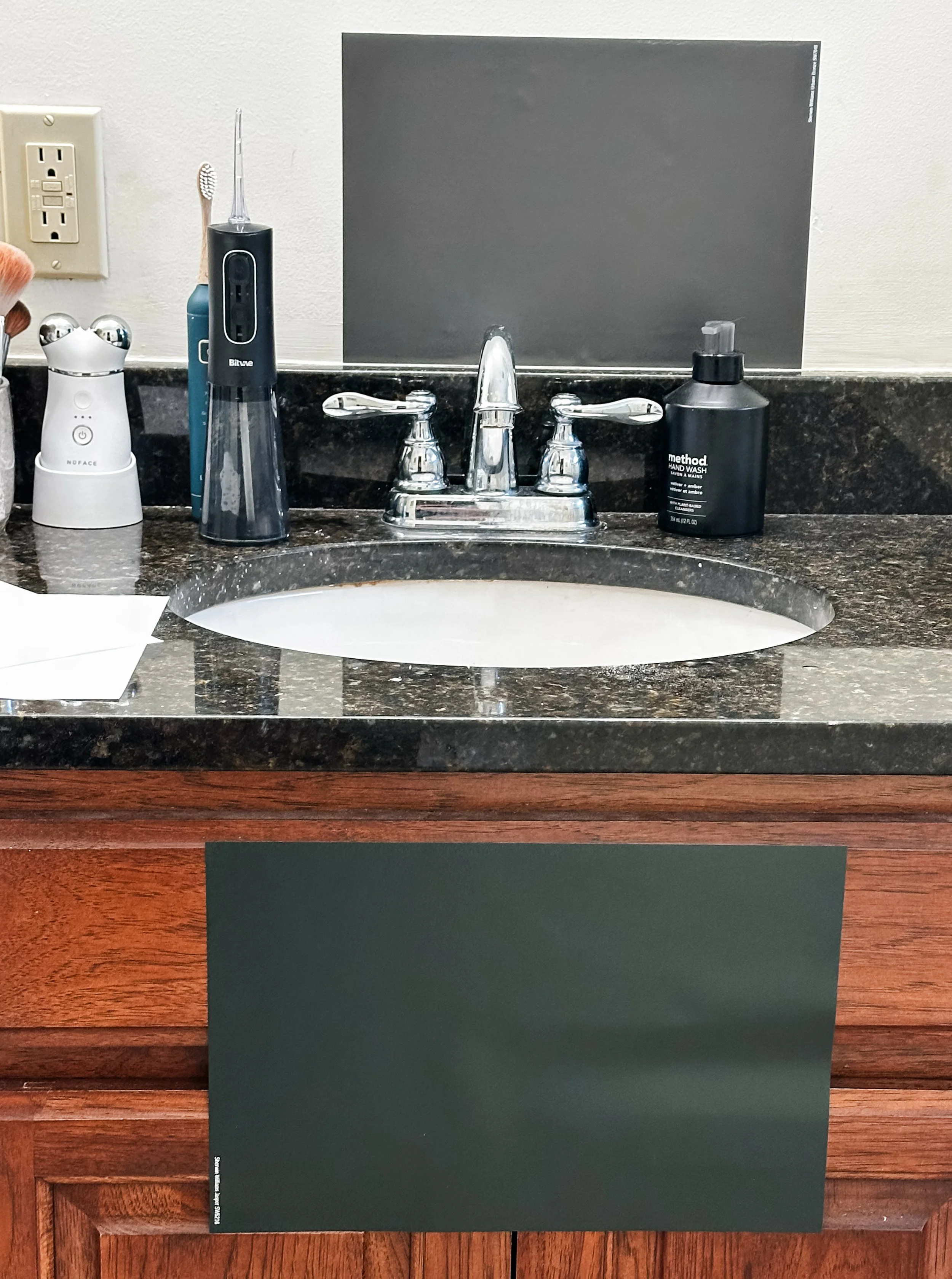 This is not my “forever” bathroom. I’ve got plans for a full primary suite renovation down the road. New layout, new finishes, the whole nine yards. But right now? It’s just not the priority. Between budgets, timelines, and the fact that a renovation would completely disrupt life in this house, I knew I wasn’t ready to dive in. Still, every time I walked into that bathroom, it felt like a space that didn’t belong to me. Outdated fixtures, bland walls, a mirror that didn’t exactly scream “good morning” — it just wasn’t the vibe.